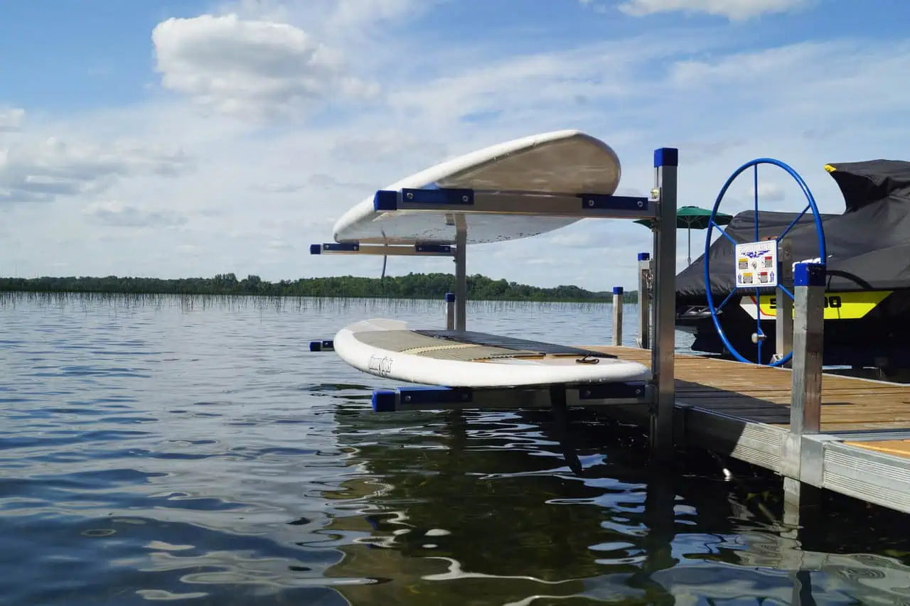 Get on the water faster with the Watersport Rack. Store your paddleboard, kayak or canoe off of your dock for easy storage and access to all your watersport accessories. Choose between a single or double rack and attach anywhere along the perimeter of your dock to accommodate your setup and needs.
