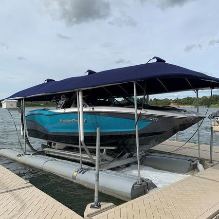 Sunstream boat lift canopy covers are primarily made of durable, marine-grade materials like vinyl and Sunbrella fabric, designed to withstand harsh marine environments.
